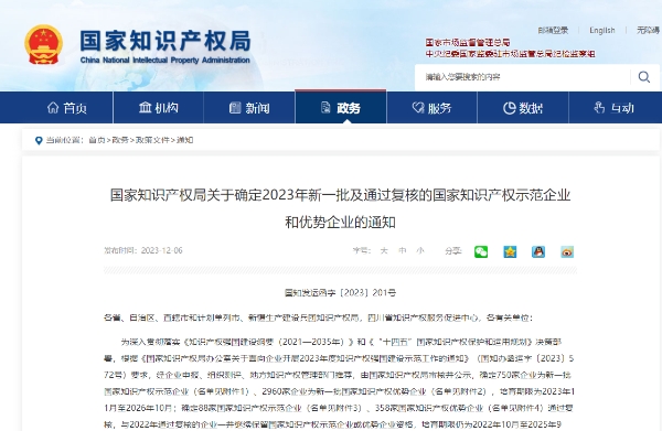熱烈祝賀公司成功入選2023年國家知識產權優(yōu)勢企業(yè)
